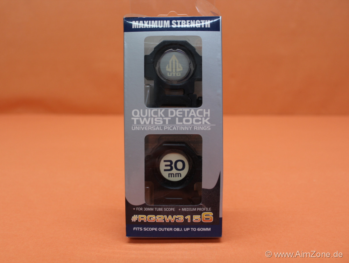 UTG QD Montageringe 30mm Medium (RG2W3156) Twist Lock Alu schwarz für Picatinnyprofil BH=15mm mit Knebelmutter (Schnellspann-Aufkipp-Montageringe).