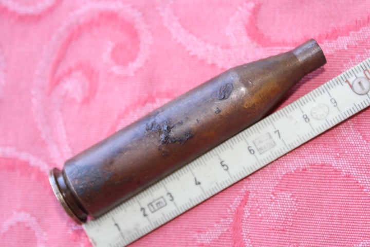 In unberührtem Fund Zustand. Nicht Gereinigt nur zur Konservierung geölt. Mit Rost Anhaftungen die sich entfernen lassen. Das Zündhütchen ist unbrauchbar. Sehr früher Wasserfund aus den 70ern.