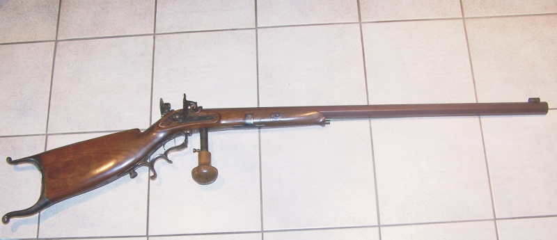 Biete ein schönes Perkussion Scheibengewehr DUVOISIN im Kaliber .45 an. Das Gewehr ist in altersgerechten guten Zustand, Nussbaumschaft mit Backe, aushakbarer Matchlauf mit 7 Zügen und verstellbarer Handstütze. Sehr schnelles Schloss, deutscher Nadelstecher. Tellerdiopter seiten - und höhenverstelbar, gechlossener Tunnel mit Balkenkorn. Die Laufschiene ist demontiert, ist aber bei der Lieferung dabei. Eine Kokille ist nicht dabei. Für den Versand werde ich den Lauf aushaken, wäre ansonsten Sperrgut. Privatauktion ohne Gewährleistung und Garantie.