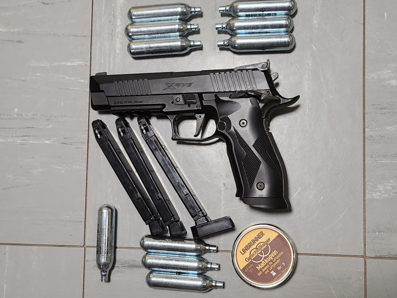 Verkaufe eine Sig Sauer x-Five Co2 4,5mm. Die Waffe ist in Ordnung und hält den Druck, hat Gebrausspuren. Verkauf wird was auf dem Bild zu sehen ist. Mit OVP. Ich verkaufe als Privatperson daher keine Garantie, keine Rücknahme Haftungsausschluss bei Personen und Sachschäden, verkaufe nur in der BRD.
