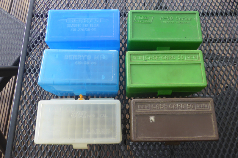 Hier biete ich 6 Patronenboxen für z. B. 8x57 und 30-06 etc. an.