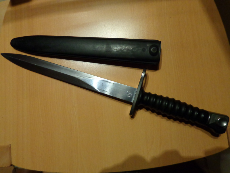 Zum Kauf kommt ein Schweizer Bajonett M57 SG57. Das Bajonett ist neuwertig. Laut dem neuen EU-Recht muss dieser Zusatz unter jeder Online-Auktion stehen, ansonsten haftet der Verkäufer ein halbes Jahr für die verkaufte Ware. Weiter ist ein Umtausch/Rückgabe ausgeschlossen. Bieten Sie nicht, wenn Sie damit nicht einverstanden sind