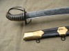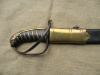 Alter Säbel (Marine?) mit Löwenkopf , das Gefäß mit Haupt und Nebenbügel in ungewöhnlicher Eisen Ausführung. Lederscheide mit Messingbeschlägen, Rücknaht geschlossen. Klinge fleckig und leicht genarbt, siehe Fotos. Gesamtlänge ohne Scheide ca. 80 cm, Klingenlänge ca. 67 cm, Klingenbreite ca. 33 mm.
