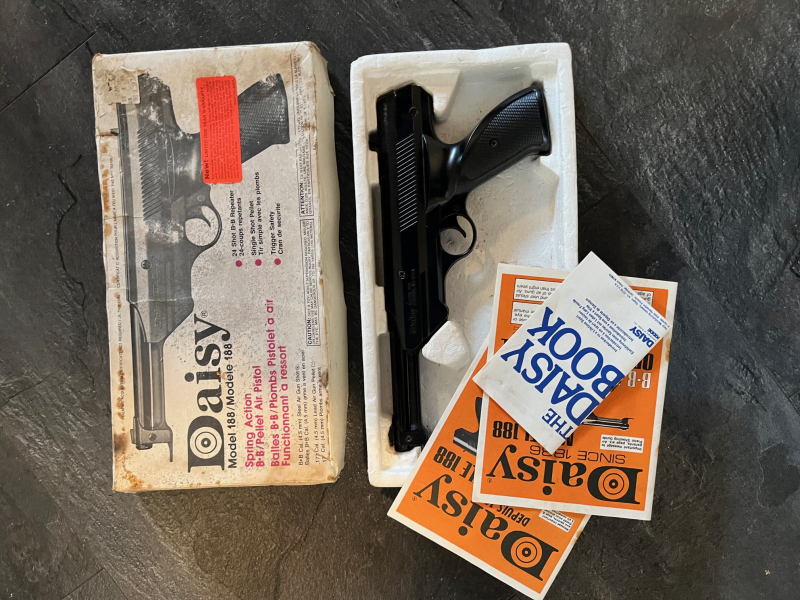 Ältere Luftpistole marke Daisy mit Gebrauchspuren. Die Sicherung ist nicht intakt, deshalb Verkauf als "defekt". Funktion ist nicht geprüft.