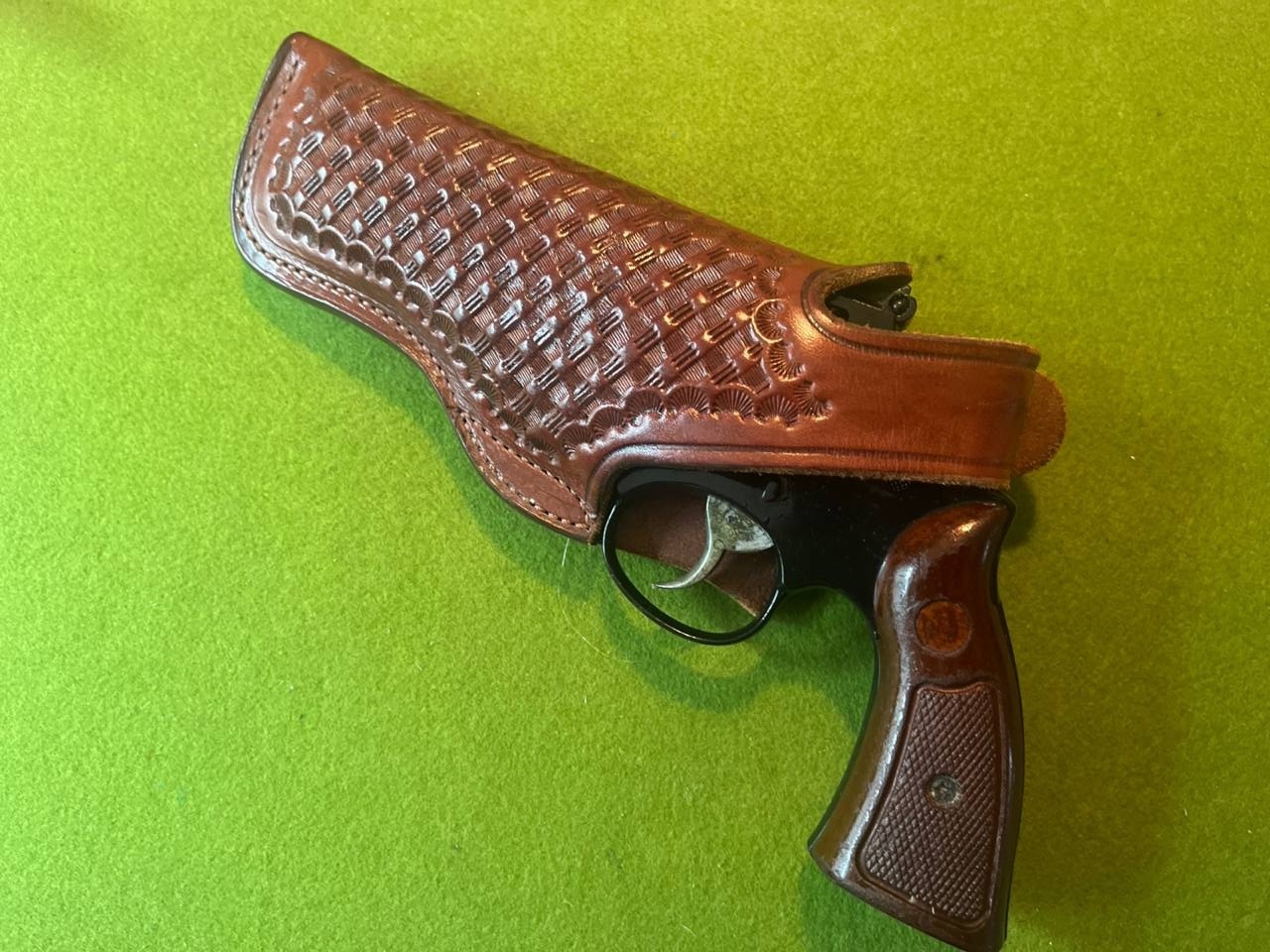 das Holster kann vermutlich für Modelle und Nachbauten von 6- schüssige Revolver mittlerer/großerer Klasse ab wenigstens 3,0 (Füllmaterial) bis 4,0 Zoll Lauf im 357/44Mag.- Kaliber wie z.B. Taurus