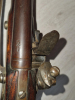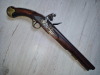 Die Pistole stammt aus einem Nachlass und befindet sich in einem sehr guten Zustand. (siehe Bilder) Nußbaum/Messing/Eisen. Vollschäftung. Runder Lauf und Schloßplatte mit Steinschloßvorrichtung aus Eisen. Abzugbügel und der schwere Kolben aus Messing. Punzierungen auf dem Schloßblech, u.a. Tower`links vom Hahn. Weitere Bilder gerne auf Anfrage. Besichtigung und pers. Abholung ist nach Absprache möglich. Verkauf nach EU-Recht ohne Garantie, Umtausch oder Nachverhandlungen