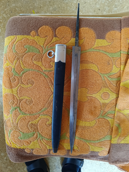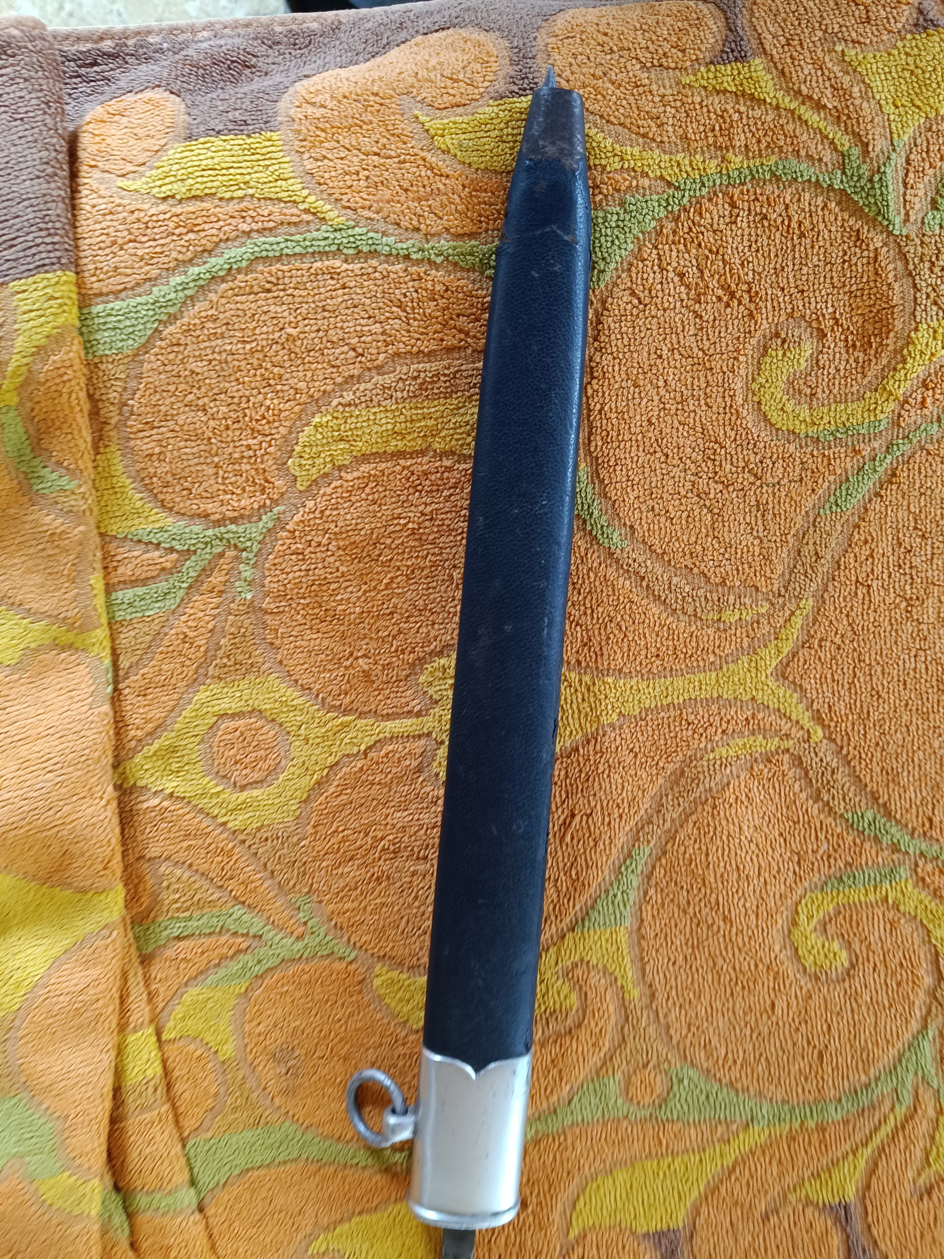 schöne orginaller Zustand der klinge Plank Nichts geschliffen oder verbogen kein Rost die dazugehörige Scheide ist daß original Leder komplett erhalten leicht beriben,es fehlt der untere und mittlere Beschlag das Mundstück ist komplett Aluminium Ausführung dies ist ein privater Verkauf keine Garantie oder Rücknahme