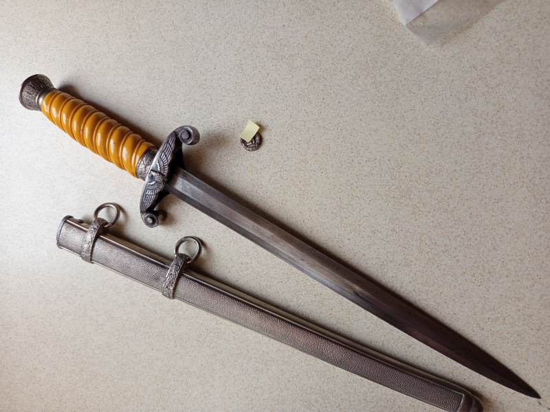 HOD sucht neues zuhause. Scheide und Klinge sind Magnetisch, Klinge ist ohne Hersteller. HK wurde abgebrochen, aber ist dabei für einen Bastler zu vollständigen. (Weiteres von den Sammler Nachlass wird folgen)