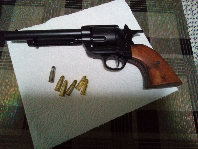 Hallo biete einen Western Revolver.in deko.trommel dreht sich.abzug auch.mit Hülsen.holzgriffschalen .
