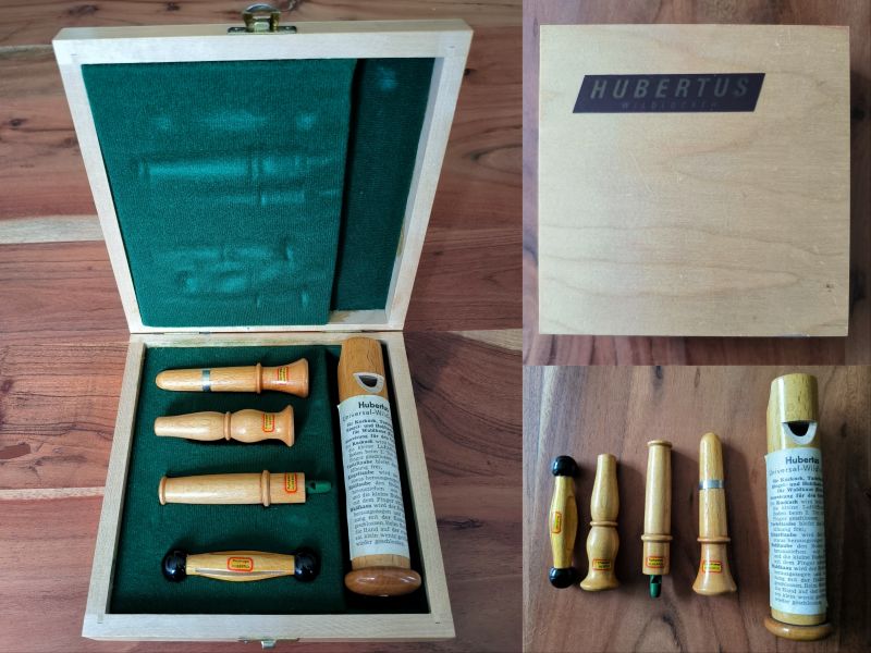Dieser schöne Holzkasten ist mit grünem Filz ausgeschlagen und enthält die wichtigsten Wildlocker.