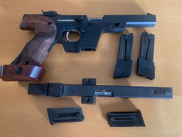 Ich verkaufe für einen Schützenkameraden eine Walther GSP Kal. .22 lfb mit passendem Wechselsystem im Kaliber 32. Dazu gehören je Kaliber 2 Magazine sowie der Waffenkoffer und eine Transporttasche mit Zahlenschloß.