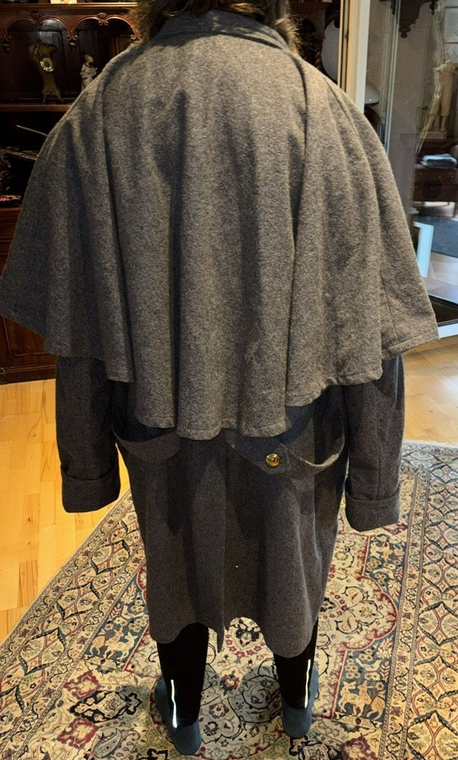 Der Mantel ist im frisch gewaschenen Zustand und wurde nur dreimal beim historischen Umzug getragen. Die Knöpfe sind alle vorhanden und ansonsten ist der Mantel m.M. nach in einem guten Zustand.