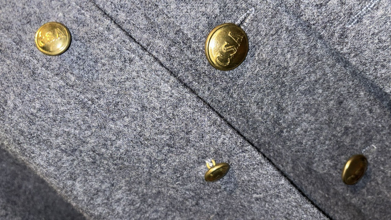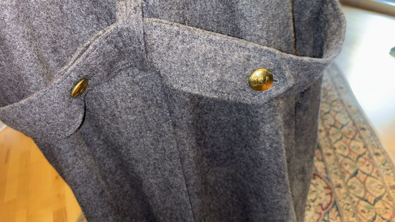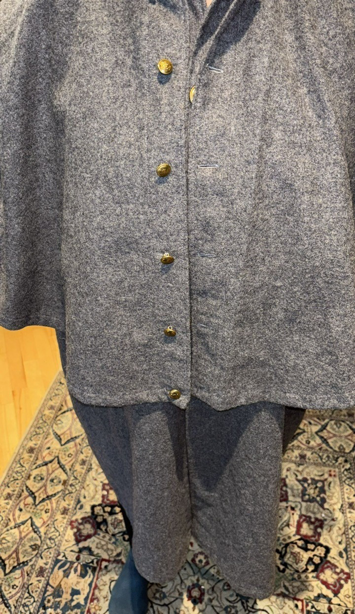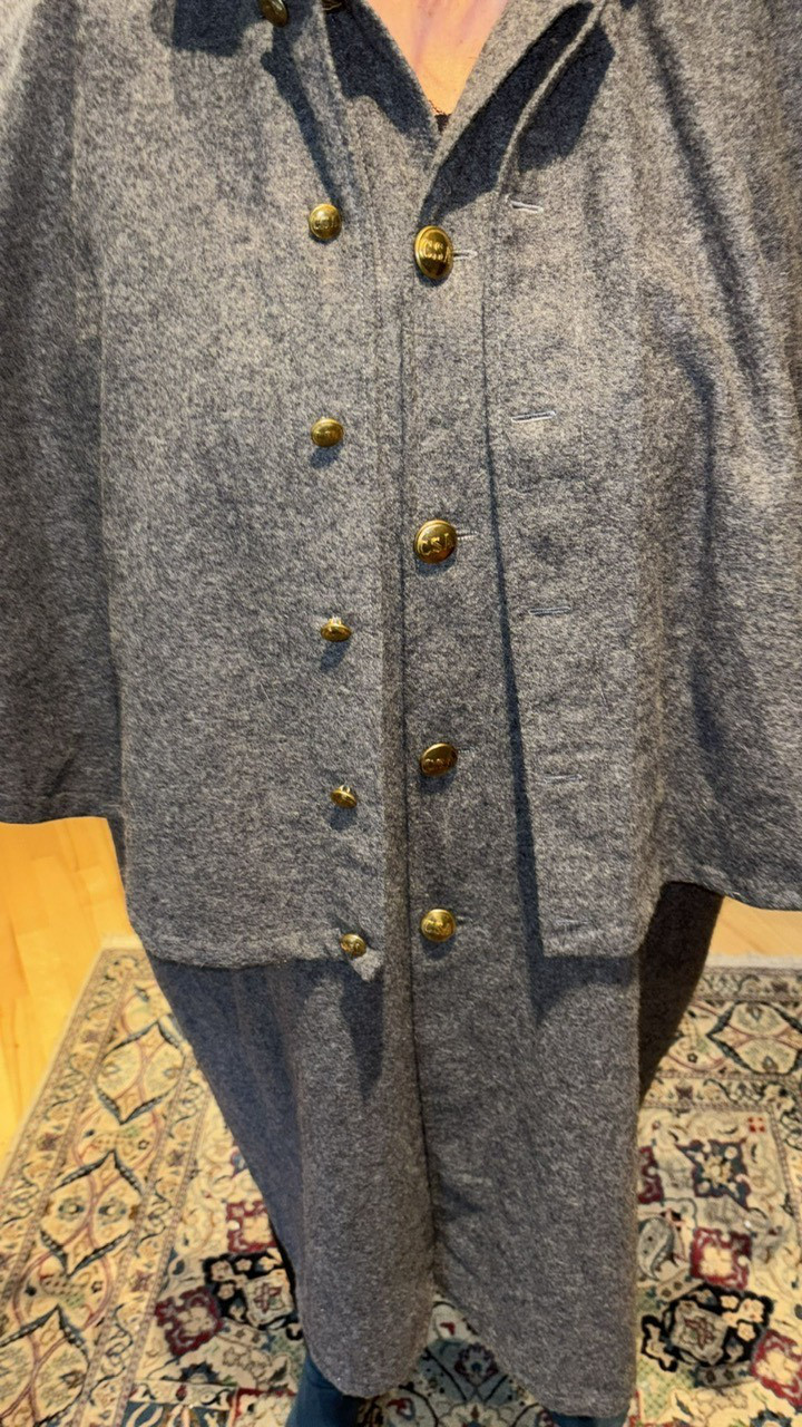 Zum Verkauf steht dieser Südstaatler Uniform Mantel in Größe XL. Dieser wurde vom Uniform Schneider genäht. Der Mantel ist zwar mit XL ausgezeichnet, könnte aber vllt auch XXL sein.