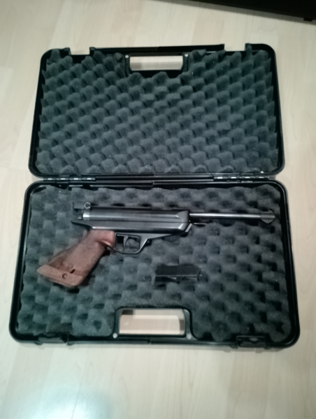 Ich verkaufe meine Feinwerkbau Match Luftpistole Seitenspanner mit Laufgewicht und Transportkoffer.