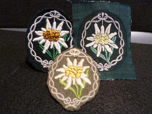 Biete Abzeichen, Aufnäher für Gebirgsjäger aus dem WK II - Edelweiss - wurde am Ärmel der Uniorm aufgenäht - nach meiner Meinung sind es Originale aus dieser Zeit......der Standartsatz, keine Garantie, Gewährleistung, Rücknahme - mit der Abgabe ihres Gebotes sind sie damit einverstanden - Fragen bitte vor dem Bieten und nicht nachher feststellen was nicht passt.