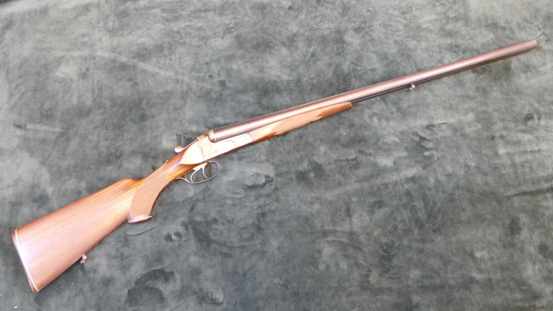 Doppelflinte Baikal, Mod. Taiga de Luxe IJ26, Kal. 12/70, altersgemäße leichte Gebrauchsspuren, Metallteile ohne großartige Flugrostspuren, weitgehend gut erhalten. Systemkasten mit Bunthärtung, Signalstifte auf dem Kasten, automatische Sicherung, Verschluß (doppelte Laufhakenverriegelung mit Purdey-Nase!!!) dicht, Läufe innen blank, Lauflänge 73cm , Schaftlänge 37,5cm, Gesamtlänge 114,5cm. Deutscher Beschuß 1972, 1/2 und 1/1-Choke.