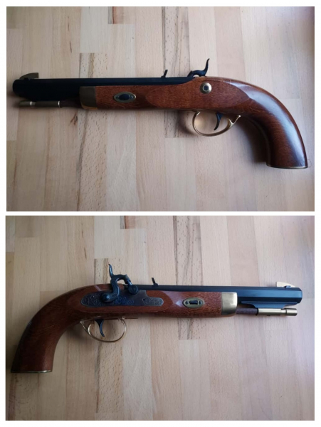 Der Lauf ist aushakbar, Länge diagonal 42 cm, Lauflänge 25 cm, Gewicht 1277 Gramm.