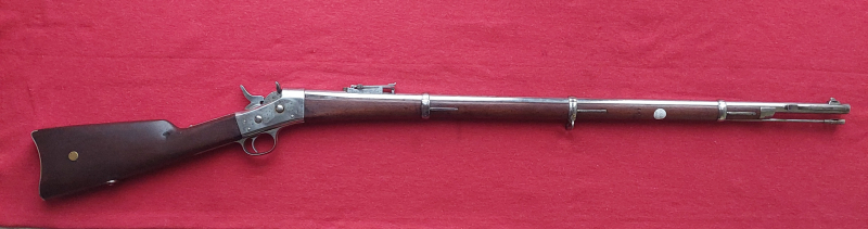 Eine Blockbüchse von "Remington" - Rolling Block / Kal.: 11,7x51R Dänisch / mit oberflächigen Abnutzungen und Spuren / das System funktioniert gut / im Lauf sind teils Narben, die Züge sind aber gut und deutlich / Lauflänge: 90cm, Gesamtlänge: 128cm