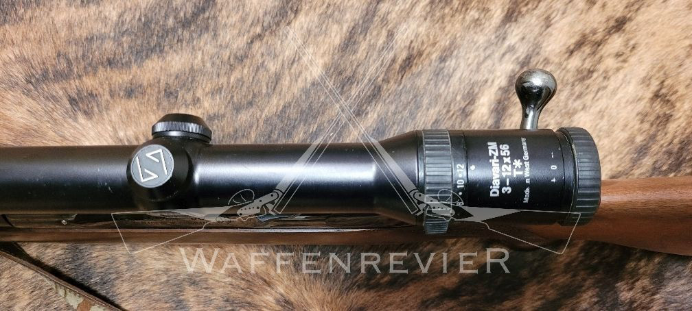 Montiert ist ein Zeiss Diavari-ZM 3-12x56 mit dem Abs. 1 auf einer Schwenkmontage.