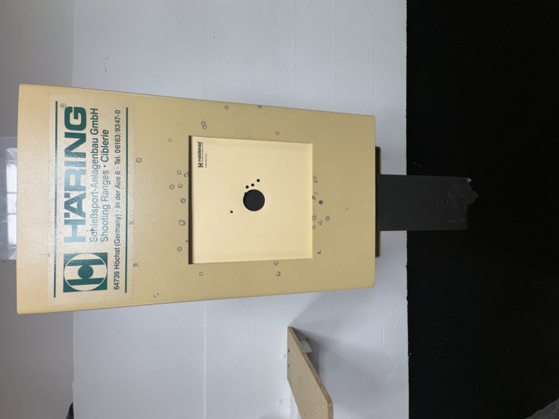 Elektronische Schießanlage für Luftgewehr und -pistole von Häring. Fünf Bahnen, komplett und voll funktionsfähig mit Rechner, Bildschirm, Kugelfang und Zubehör.