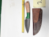 Stabiles feststehendes Sehr schönes Damastmesser, Klingenstsärke 3,6mm, Hand genähte stabile Lederscheide mit Gürtelschlaufe.