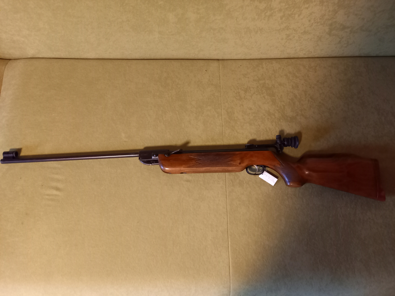Sie bieten hier auf absolutes Schätzchen. Ein altes Weihrauch HW55M im Cal. 4,5mm in einem hervorragenden Sammlerzustand. Es ist eine Vitrinenwaffe aus privater Sammlung. Waffennr. 029313. Müsste BJ 1960 sein. Sie hat den original Diopter, einen Kornsattel mit auswechselbaren Korn. Der Druckhebelverschluss ist fein einstellbar. Ferner ist schon der feineinstellbare Rekordabzug verbaut. Der Abzugsbügel ist noch sehr schwerem Stahlguss. Der 50cm lange Lauf ist innen Spiegelblank mit starkem Drall. Das System samt Lauf hat noch eine gute schwarze Brünierung ohne jeglichen Flugrost oder Pickel. Der Diopter ist leichtgängig verstellbar. Schaft ist aus Nussbaumholz mit rundum perfekter Fischhaut-Verschneidung. Es weist keine Risse oder Brüche auf. An der Backenseite ist eine kleine Schramme zu sehen (siehe Kreis) sonst nur kleine Kratzer. Auch die alte Gummischaftkappe ist noch gut erhalten. Die Schussleistung ist noch ausgezeichnet. Eine so schöne und präzise Waffe für dieses Alter von 65 Jahren ist sehr schwer zu bekommen. Ein sehr schönes und gut funktionierendes Sammlerstück. Verkauf nur an Personen über 18 Jahren, Altersnachweis erforderlich. Privatverkauf keine Garantie oder Gewährleistung, kein Umtausch oder Rücknahme. Verkauf nur innerhalb der EU. Versandkosten nur für Deutschland, für EU Versand bitte vorher Kosten anfragen. Viel Spaß beim bieten!