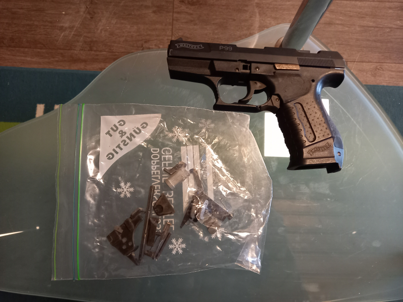 Sie bieten auf ein Konvolut gebrauchter Ersatzteile für eine Walther Schreckschuss Pistole P99. Sie bekommen alle Teile was auf den Bildern zu sehen sind. Verkauf nur an Personen über 18 Jahren, Altersnachweis erforderlich. Privatverkauf keine Garantie oder Gewährleistung, kein Umtausch oder Rücknahme. Verkauf nur innerhalb der EU. Versandkosten nur für Deutschland, für EU Versand bitte vorher Kosten anfragen. Viel Spaß beim bieten!
