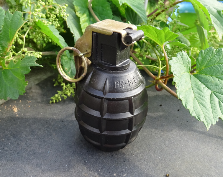Granatkörper, Bügel und Sicherungssplint sind original.