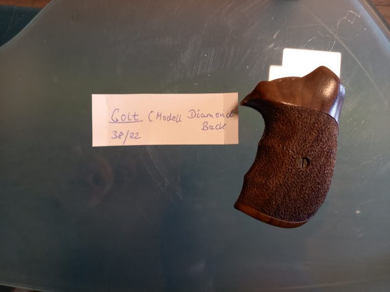 Sie bieten auf eine neuwertige Nussbaum-Griffschale für den Colt 38/22, Modell Diamond Back, mit Befestigungsschraube.