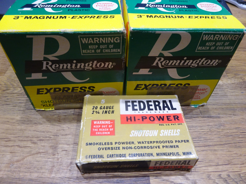 Konvolut von 48 Schrotpatronen Kal. 20/76 Magnum von Remington, dazu eine angebrochene Packung Slugs in 20/70, siehe Foto und mein egun