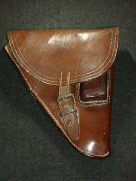 aus Sammlung, eine Walther Mod.4 steckte in dieser Pistolentasche, Leder braun, aufgesetzte Magazintasche, die nähte sind OK, Schliesse wie bei der 08 Tasche, guter Zustand