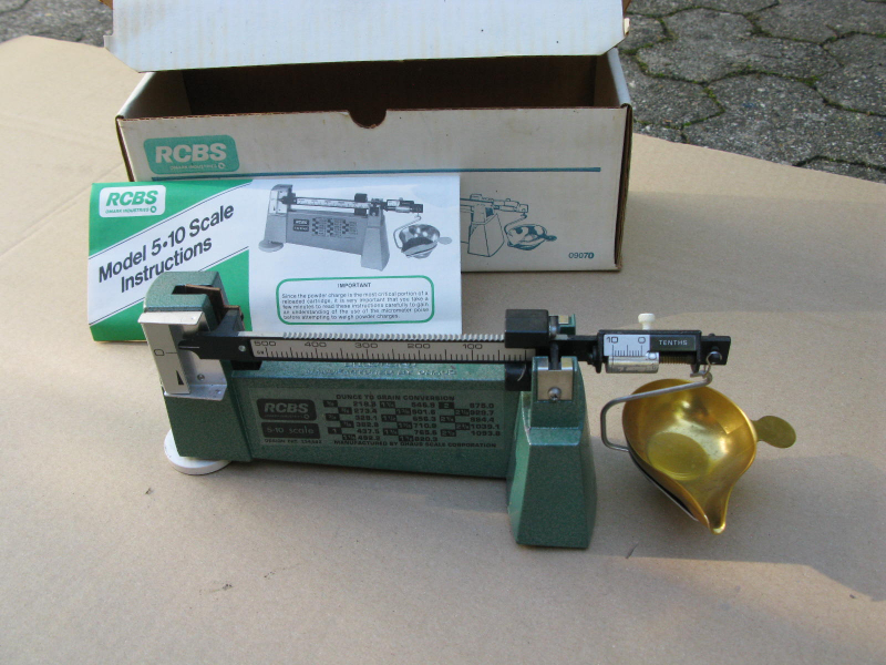 Hier biete ich aus den Beständen eines Schützenkameraden, der sich aus dem aktiven Schießsport zurückzieht, eine Pulverwaage an. Sie hat vom Lagern einige Anlaufspuren, ist aber technisch in Ordnung und kommt mit OVP.