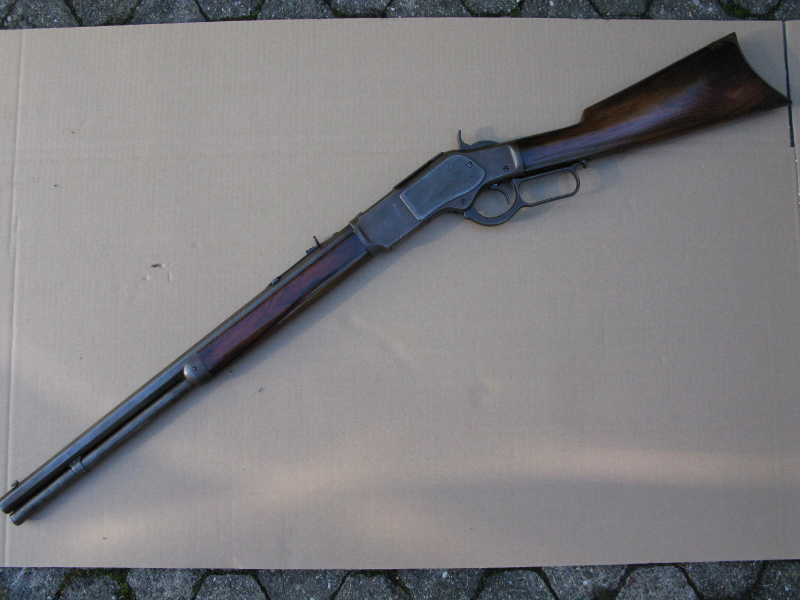 Hier biete ich aus den Beständen eines Schützenkameraden, der sich aus dem aktiven Schießsport zurückzieht, einen Winchester Unterhebler in .44-40 an. Er ist in einem altersentsprechenden Zustand, die Mechanik läuft und er wurde wohl vor Jahren auch mal probegeschossen. Die Züge sind flach, aber erkennbar, der Lauf hat einige Rostnarben. Laut einem vorliegenden Gutachten soll die Waffe im Jahr 1910 hergestellt worden sein, sie hat den internen Winchester-Beschuß, der in Deutschland nicht anerkannt ist. Deshalb Abgabe nur an Sammler oder Händler. Wegen des Achtkantlaufs könnte es sich um eine auf Carbine gekürzte Rifle handeln.