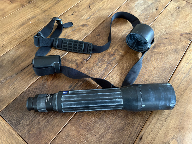 Wegen Überbestand verkaufe ich mein schönes, voll gummiertes Zeiss Spektiv, das mit einem Tragriemen versehen ist. Aktueller LAdenpreis liegt derzeit bei EUR 1.300,00.