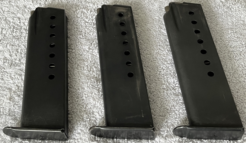 Zum Verkauf stehen drei (3) Stück Magazine für eine SIG P 210. Gebrauchter Zustand - siehe nachfolgende Bilder. Diese Variante ist nicht für den seitlichen Magazinauswurfknopf gedacht.