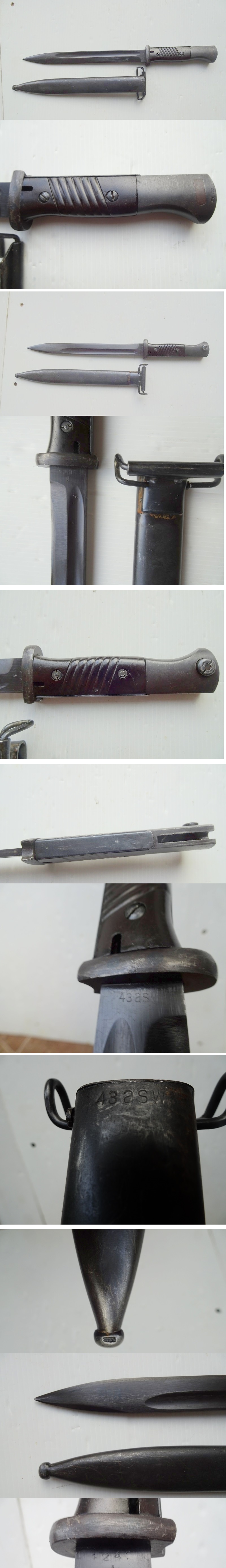 Zur Versteigerung kommt ein Bajonett für 98er Karbiner, 43asw, "E.& F. Hörster, Solingen", schöner, gebrauchter Zustand. Das Bajonett ist gestempelt mit „1243t. Das Bajonett befindet sich noch mit schwarzer Brünierung, die Scheide ist mit ebenfalls mit Hersteller 43asw, aus 1943 jedoch vorgerichtet mit der Aufhängung zu einen US- Lochkoppel.. Alles Weitere entnehmen Sie bitte den Bildern. Verkauf aus Ankauf ,Erbschaft oder Komission. wird das Garantie- u. Rückgaberecht für diesen Artikel ausgeschlossen. Käufer trägt Versandkostenpauschale von 10,00 Euro. Vorbesichtigung nach Absprache erwünscht. Korospontenz und Versand nur Freitag, Samstag und Sonntag. Firma Vogel GbR, Waffenhandel, Oberschweinach 1, 91413 Neustadt.