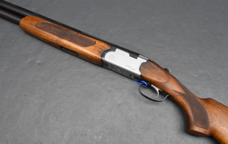 Sicherungsschieber/Umschalter auf dem Kolbenhals. Nußbaumschaft ohne Backe, mit Schaftkappe und Riemenbügelbasen. Läufe sehr gut, Verschluß dicht, Brünierung 98%, Schaft sehr gut Gebrauchtwaffe, gut