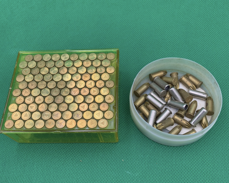 120 Stück Platzpatronen Kaliber 22 lang. Als Zugabe gibt es noch weitere 10 Patronen(vermutlich Gas).