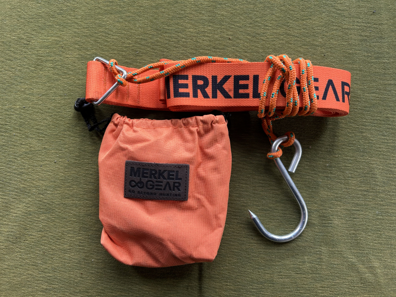 Der MERKEL GEAR Bergegurt Deer Drag ist eine schlichte, aber dennoch äußerst nützliche und klug durchdachte Bergehilfe bei der Bergung selbst von schwerem Wild. Der massive, verzinkte Stahlhaken (Länge: 12,5cm) über eine Triangel aus Edelstahl und mittels Paracordseil aus 100% Polyester befestigt an einem 4,7 cm breiten leuchtend signalorangenem Gurtband hält einer Zuglast von maximal 400 kg stand. Das aus 100% Polyester bestehende Gurtband bildet je zwei 100cm lange Schlaufen, wodurch die Wildbergung auch von zwei Personen gleichzeitig durchgeführt werden kann.