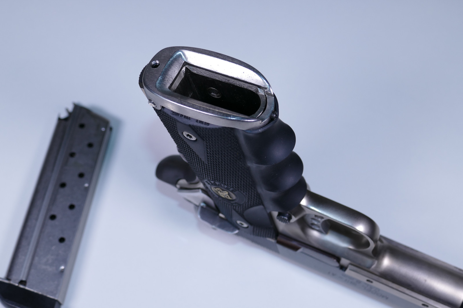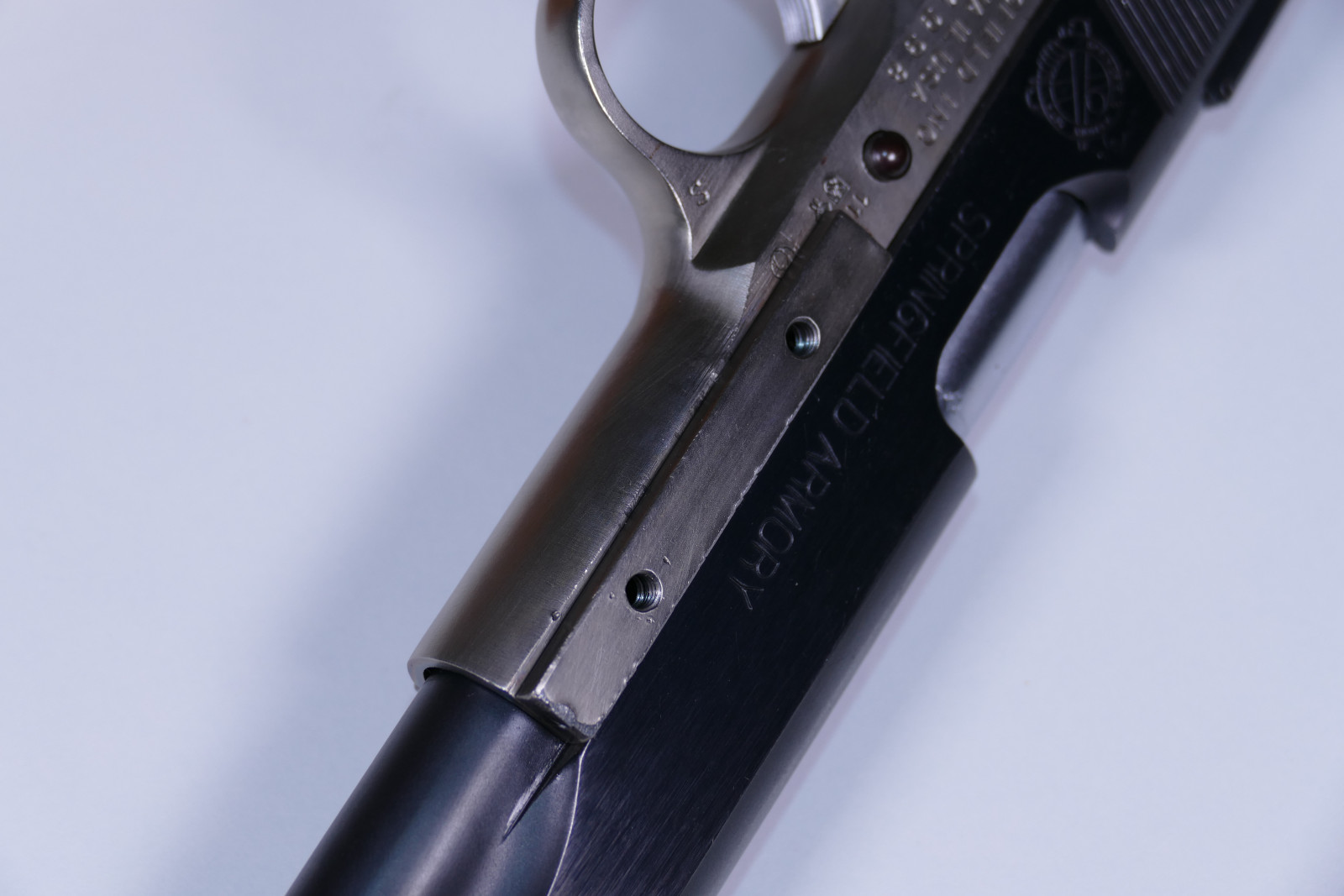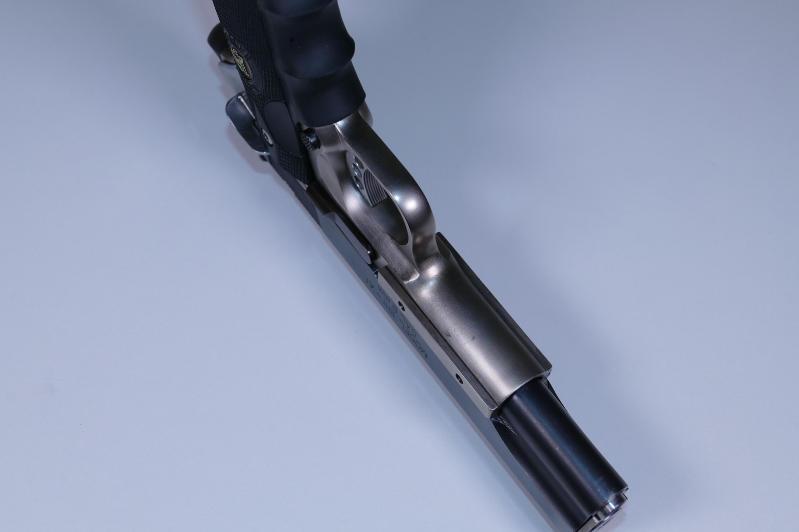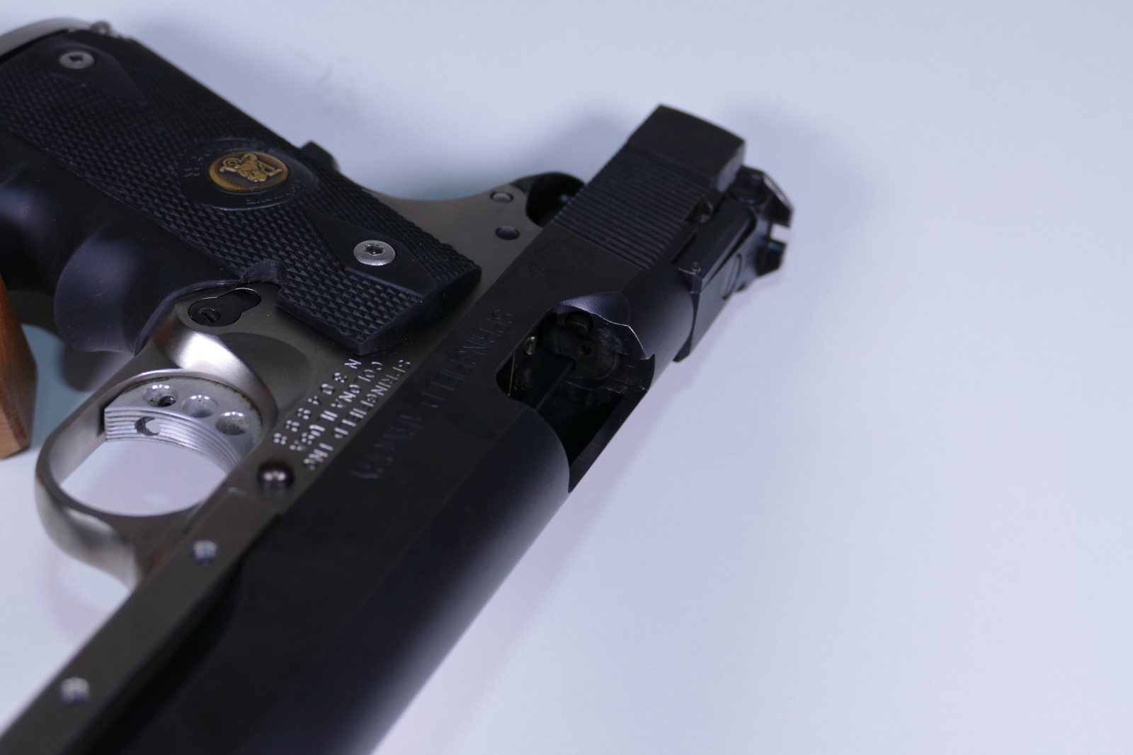 Zum Verkauf kommt hier eine gepflegte Springfield 1911 A1 im Kaliber 9mm Luger in Bicolor. Die Waffe ist gebraucht, aber sehr gepflegt. Der Verschluss läuft mit wenig Spiel, der Abzug kommt trocken. Montiert sind ein Micrometervisier, Pachmayr-Griffschalen, Magazintrichter sowie eine Montagevorrichtung für eine Brückenmontage. Diese wurde offensichtlich nicht verwendet. Mit dabei sind insgesamt vier Magazine. Zum Zustand schauen Sie sich bitte die Bilder an. Viel Spaß beim Bieten!