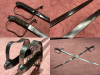 Beide Säbel ohne Scheide. Von der Länge sind die Säbel nahezu ident und für "gekreuzte Klingen" an der Wand bestens geeignet.