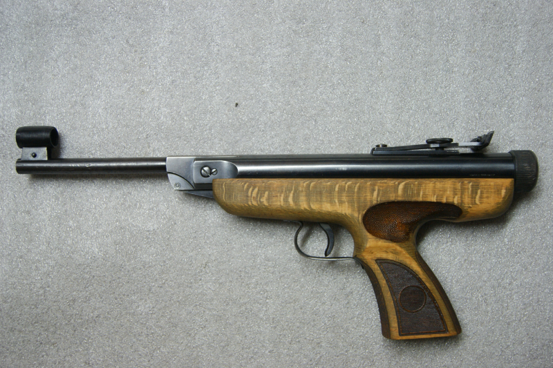 Angeboten wird aus Vereinsbestand eine Luftpistole Diana 5 ohne Seriennummer und ohne "F". Holzgriff rechts, vor dem Abzugsbügel gerissen, von eifrigem Zeugwart abgeschlifen und geölt. Feder, Kolben - und Laufdichtung neu aber nur 65 m/s. System mit starken Gebrauchsspuren, Lauf hat innen Kratzer. Mechanisch in Ordnung. Zustand siehe Bilder. Verkauf ausdrücklich als DEFEKT !!! Altersnachweis 18 Jahre erforderlich. Privatverkauf ohne Garantie oder Gewährleistung. VERSAND NUR IN DEUTSCHLAND!!!!!
