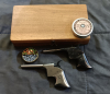 2 Stück Saloon-Pistole in Original Holz Cassette, von der im Original zwischen 1860 und 1863 nur etwa 200 Stück gefertigt wurden. Die Pistole verschießt Bleikugeln nur mit einem Zündhütchen ohne Treibladung: kraftvoll, präzise und relativ leise auf kurze Entfernung. Einfach nur eine Kugel in die Ladevorrichtung, Zündhütchen aufsetzen, schussbereit. Es sind Zündhütchen und ca 200 passende Kugeln dabei.