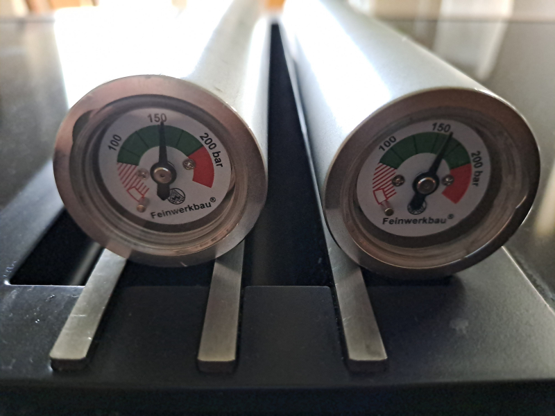Verkaufe Pressluftkartusche ( kurz ) 200 bar der Marke FWB für Pistole. Sie sind in einem sehr guten Zustand.