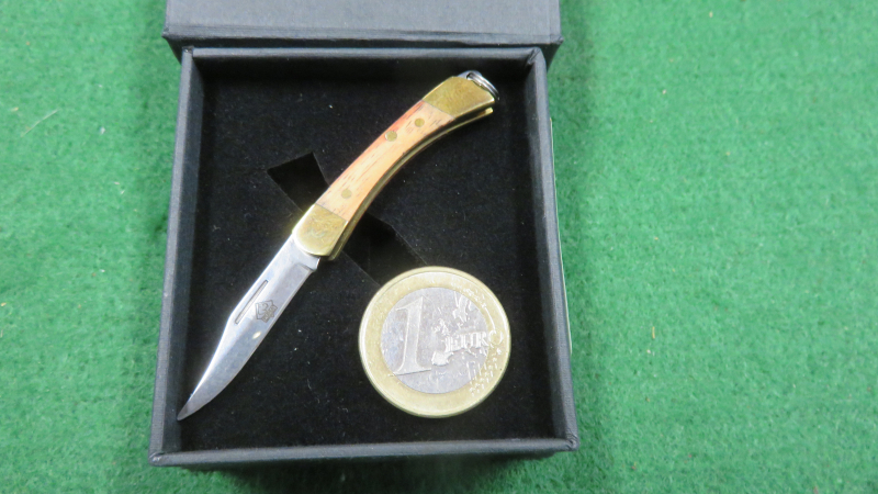 1 Originales Puma Mini Messer " Game Warden Nr. 620970 " Das Mini Messer ist neu/unbenutzt, es handelt sich hier um das kleinste Messer aus der Puma Produktion, Gamtlänge: 7 cm. Klingenlänge: 3 cm. Auf der Klinge mit dem Puma Logo. incl. Luxus Pappschachtel. (Die Euro Münze gehört nicht zum Lieferumfang)