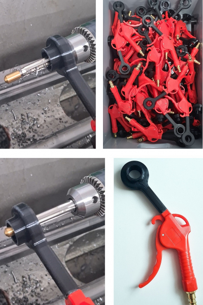 Sie kaufen hier jeweils einen Druckluftreiniger für Reibahlen und runde Zerspanungswerkzeuge. Die Druckluftpistole wird an einen Handelsüblichen Druckluftanschluss angeschlossen. Danach kann man mit unserem Reiniger das Werkzeug im Handumdrehen schnell reinigen. Man benötigt beim reiben von Patronenlagern weder einen Pinsel noch andere Geräte und ist dadurch sehr schnell. Der Druckluftreiniger wird einfach von hinten nach vorne bewegt, wobei durch die Druckluft das Werkzeug gesäubert wird. Sollten Sie einen Internationalen Versand benötigen, bitten wir Sie sich einfach vorab bei uns per Mail an InfoSWP@web.de zu melden.