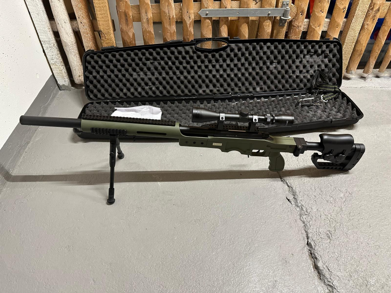 Detaillierter und stabiler Federdruck-Nachbau des aktuellen US Army und US SOCOM Scharfschützengewehrs im Maßstab 1/1. Interessant bei dieser Airsoftnachbildung von Well ist das Hybrid-Schusssystem. Dieses basiert auf den zuverlässigen Tokyo Marui L96 und VSR-10 Schusssystemen wodurch unzählige Tuningmöglichkeiten vorhanden sind. Bereits ab Werk sind die Schussrelevanten-Teile aus Metall gefertigt, was ganz klar für diese Airsoftreplika spricht. Auch das Komplettset inkl. Metallzweibein und Metall-Zielfernrohr wurde von Well sehr gut zusammen konfiguriert. Das Well MB4411D ist in vielen Teilen eine Nachbildung des Modular Sniper Rifle (MSR) Scharfschützengewehrs, wie es seit März 2013 bei der United States Army sowie den US SOCOM Spezialkräften eingeführt wurde. Insgesamt werden in den nächsten 10 Jahren 5.150 Gewehr an das Militär ausgeliefert.