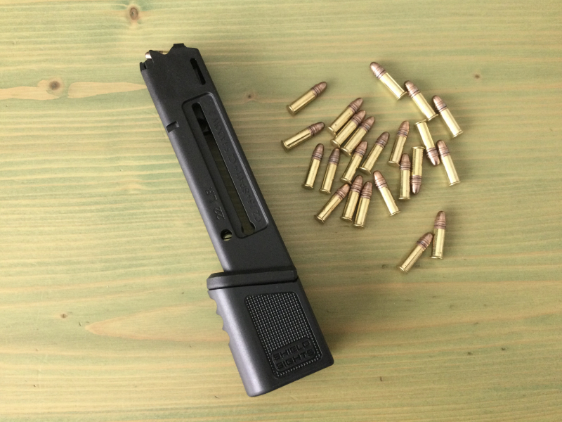 Basis ist ein originales CZ KK-Magazin mit erweitertem Boden und Feder der Firma Shield Sights.