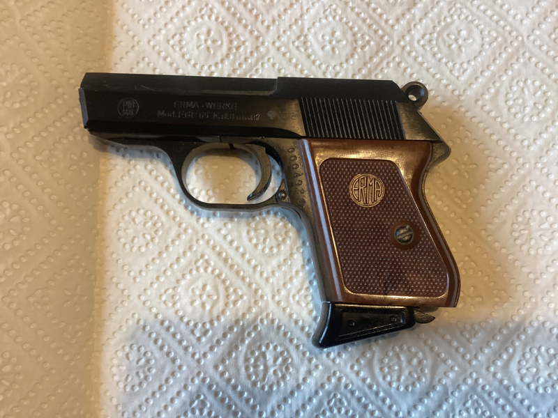 Waffe ist in sehr gutem und funktionierenden Zustand. Frühe Bauform die zerlegt werden kann, obwohl das Magazin vorhanden ist. Muss wohl im Dezember 1975 bzw. Januar 1976 hergestellt worden sein. Zubehör siehe Foto.