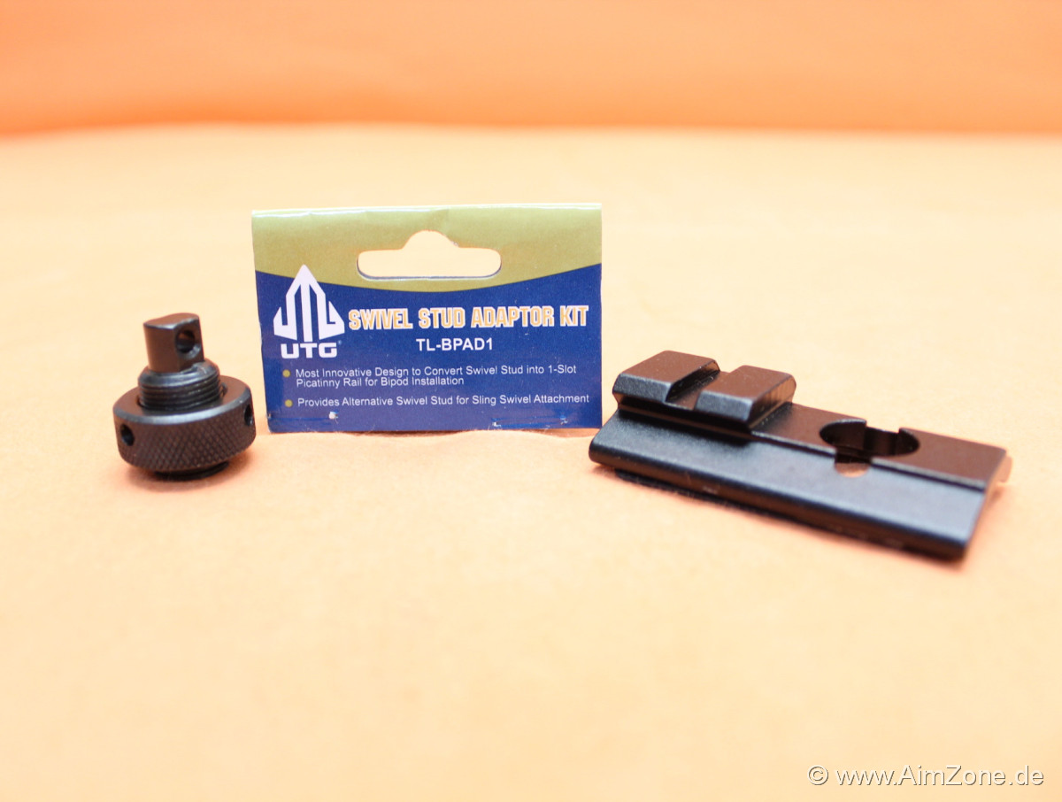 UTG Zweibeinadapter für Riemenöse (TL-BPAD1) Alu Schwarz mit Picatinnyprofil (Riemenösenadapter) Swivel Stud Adaptor Kit.